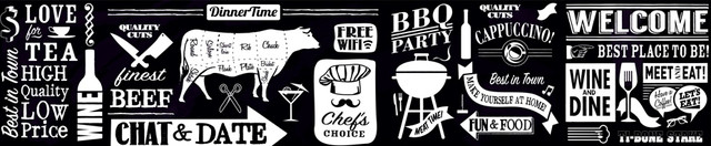 Підбірка принтів імітуючих картинок (еди та напоїв) намальовані мелодією.