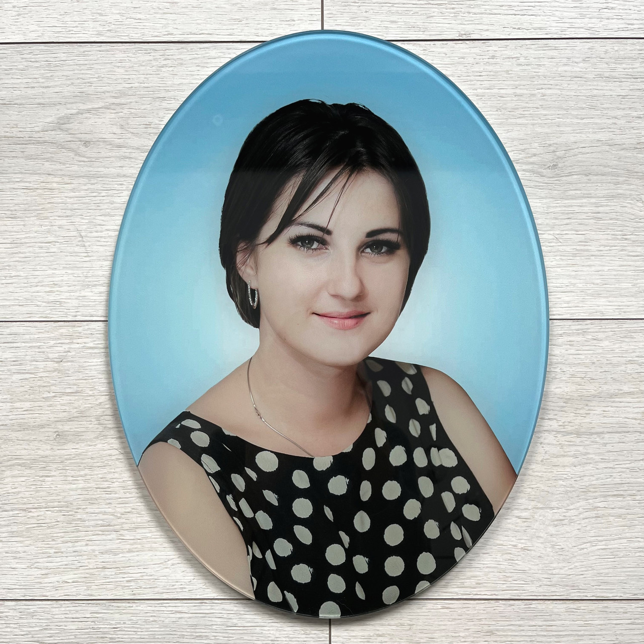 Наша компанія виготовляє на замовлення пам'ятний жіночий фотопортрет з будь-яким фоном. Скляний декор має захисні властивості щодо вологи, перепаду температур, УФ-випромінювання. Застосовуємо сучасну технологію "триплекс".